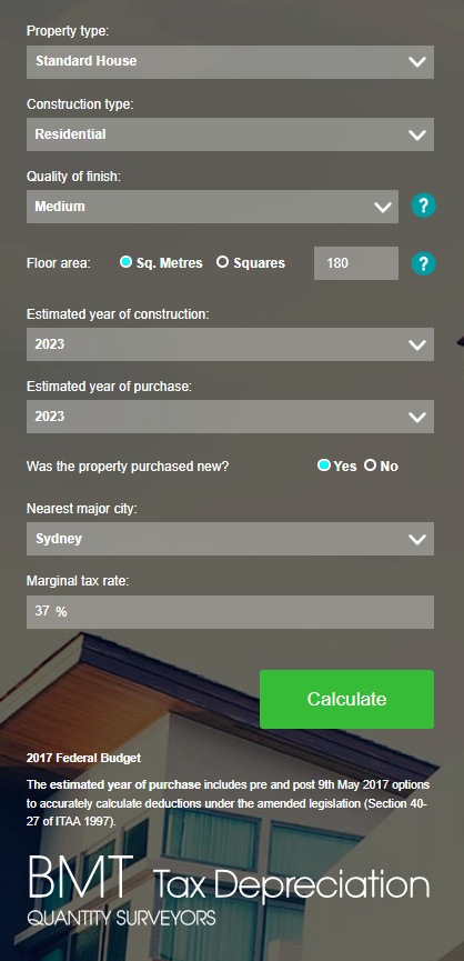 Simply by using the below Tax Depreciation Calculator to estimate the depreciation available to you on your Investment Property.